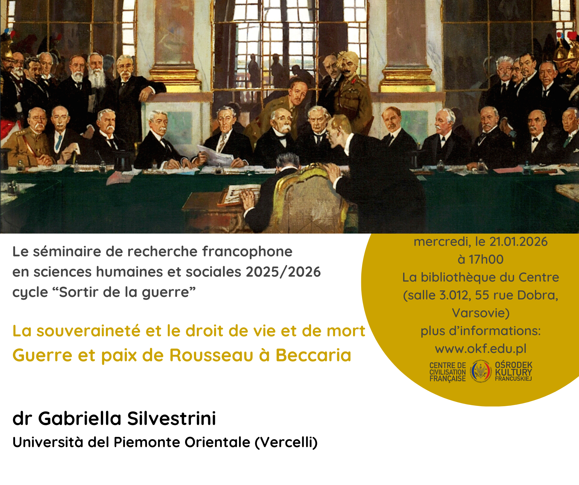 Suwerenność oraz prawo nad życiem i śmiercią. Wojna i pokój od Rousseau do Beccarii | dr Gabriella Silvestrini | 21.01.2026